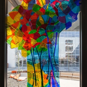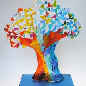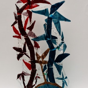 20 x 30 cmGroeivormen in hoge stolp. Bullseye glas in geblazen floatglas.