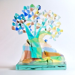 In mijn atelier onderzoek ik verschillende beeldende en technische mogelijkheden van oven-gevormd glas. Mijn glaskunst is altijd verbonden met mijn schilder en grafisch werk, in thema én vormgeving. Inmiddels heb ik ervaring met glasopdrachten voor wandobjecten, vensters en ruimtelijk werk. Tevens maak ik vrij werk geïnspireerd op thema's uit de natuur.